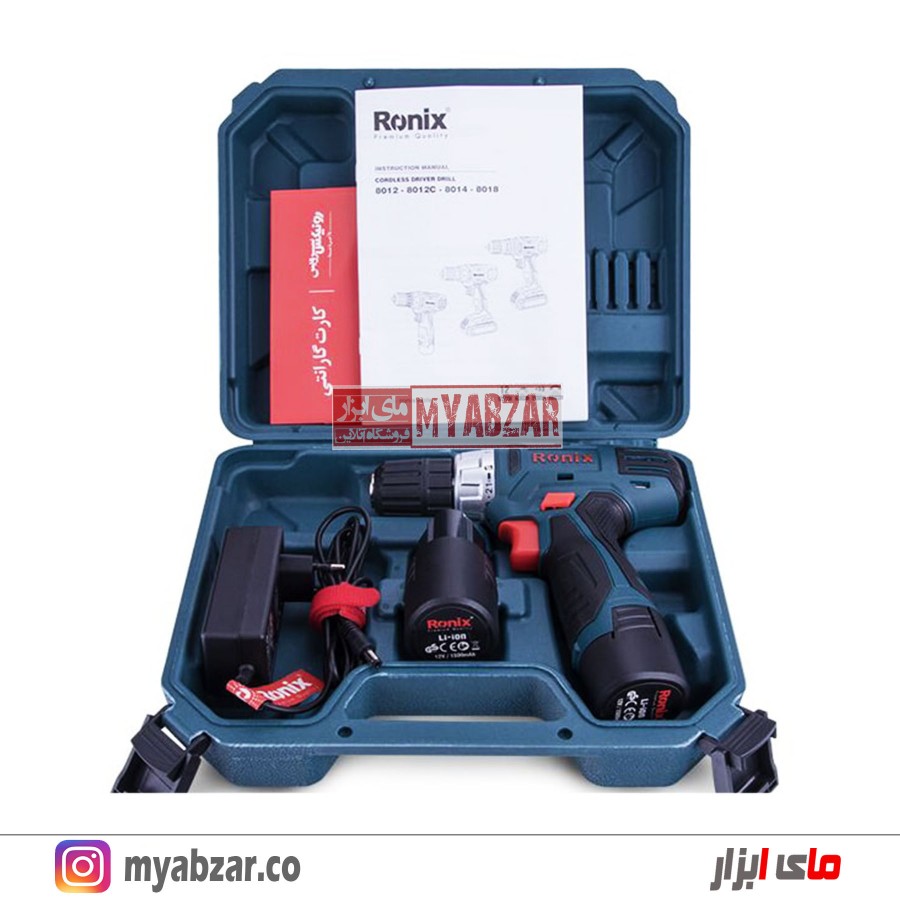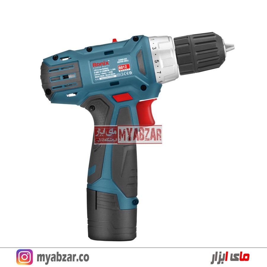 دریل شارژی رونیکس 12 ولت مدل 8012 (دو عدد باتری)