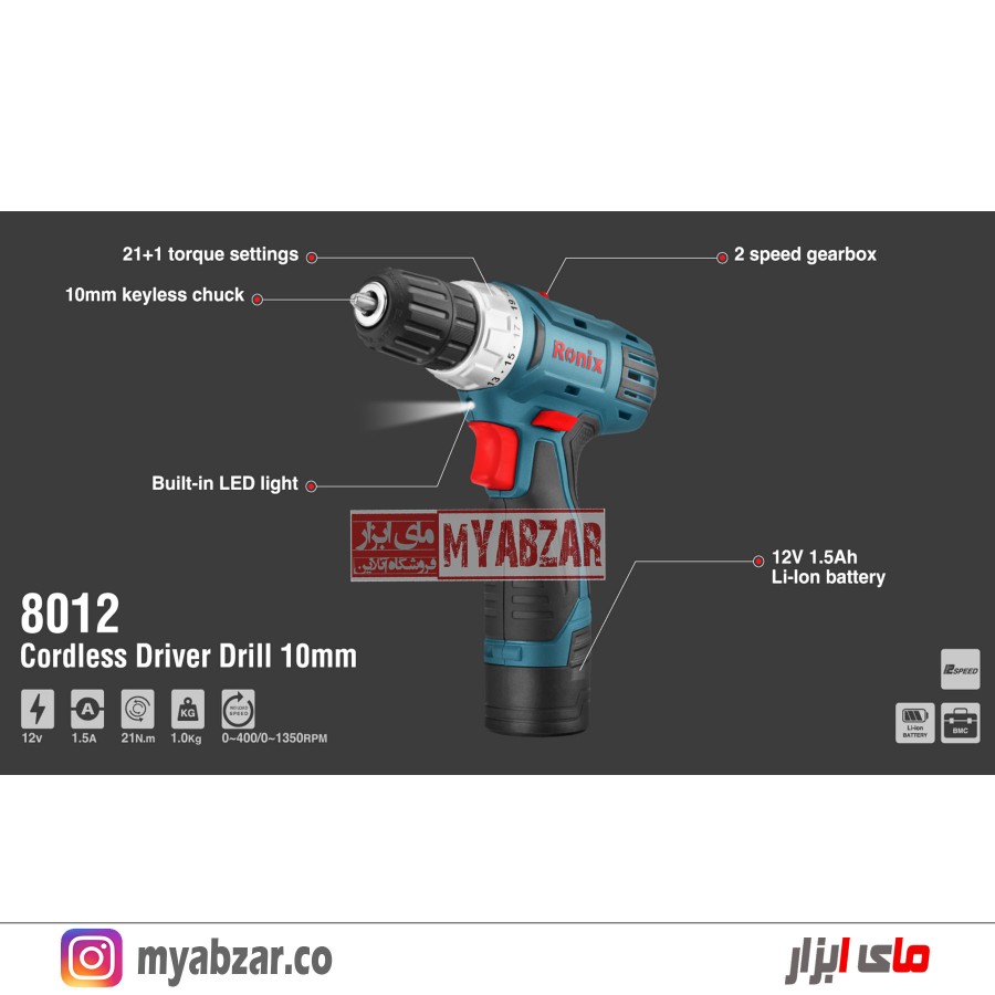 مشخصات دریل شارژی رونیکس مدل RONIX 8012